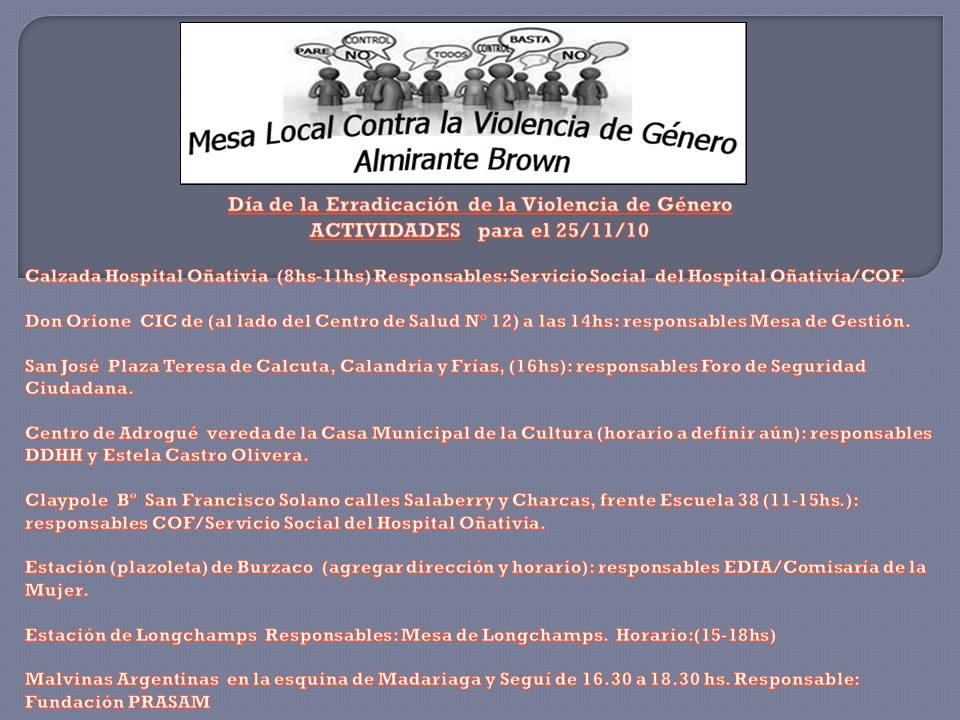 CONTRA LA VIOLENCIA DE GÉNERO DE ALMIRANTE BROWN: